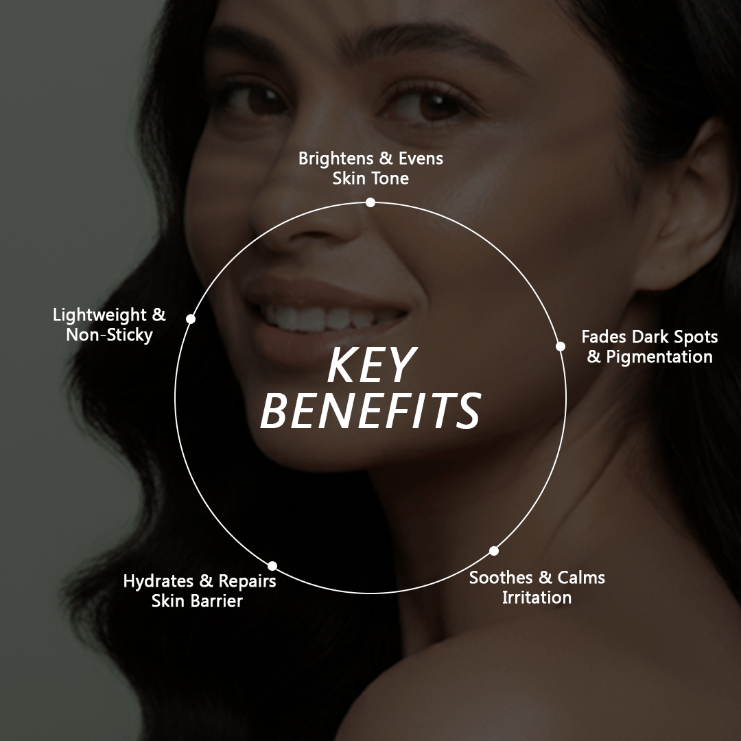 - Niacinamide (5%) – Brightens skin tone, refines texture & controls excess oil
